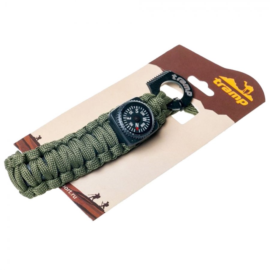 Браслет выживальщика Tramp TRA-237. На браслете есть компас и огниво с кресалом. Отличный подарок для туристов-выживальщиков. Носится как украшение на руке.